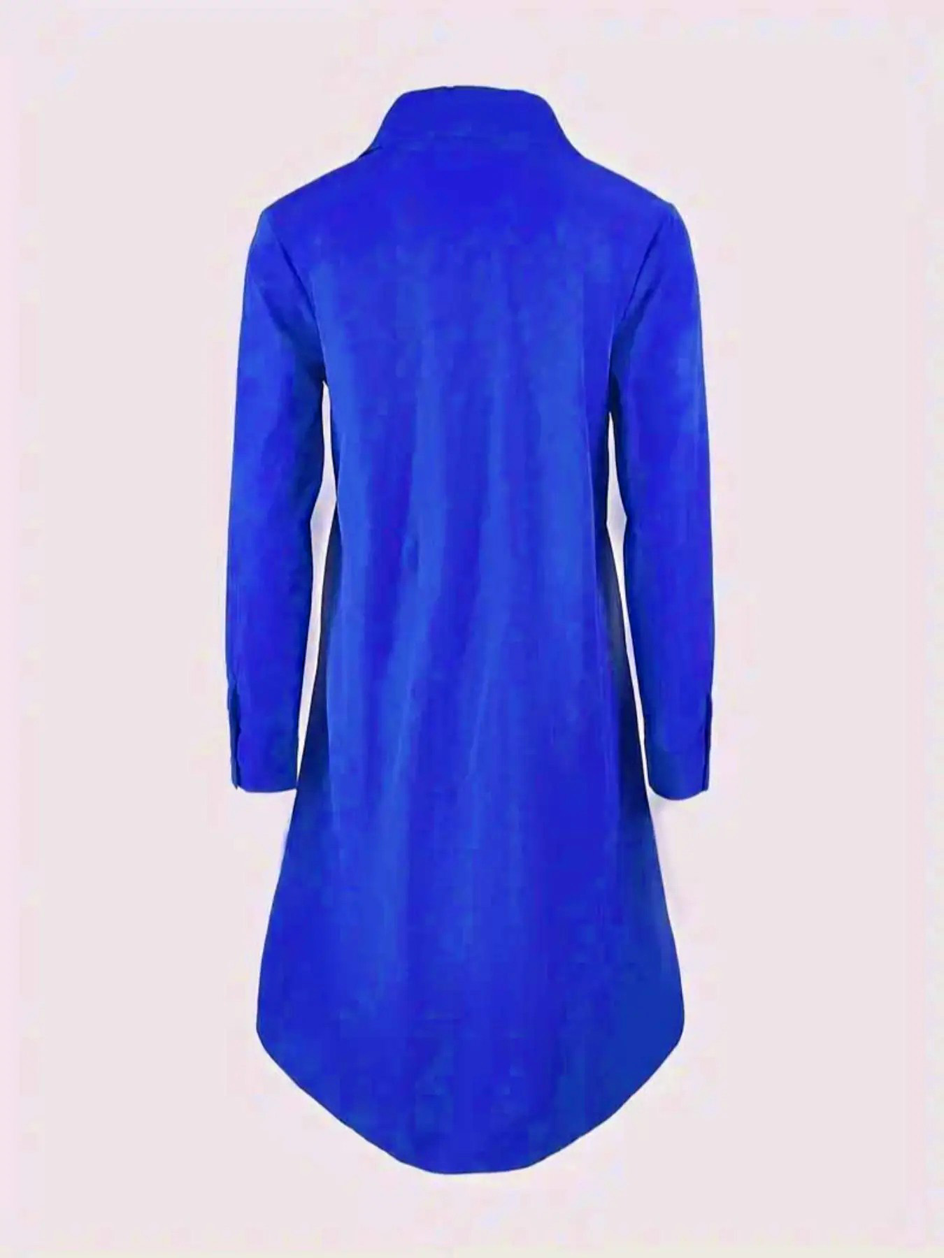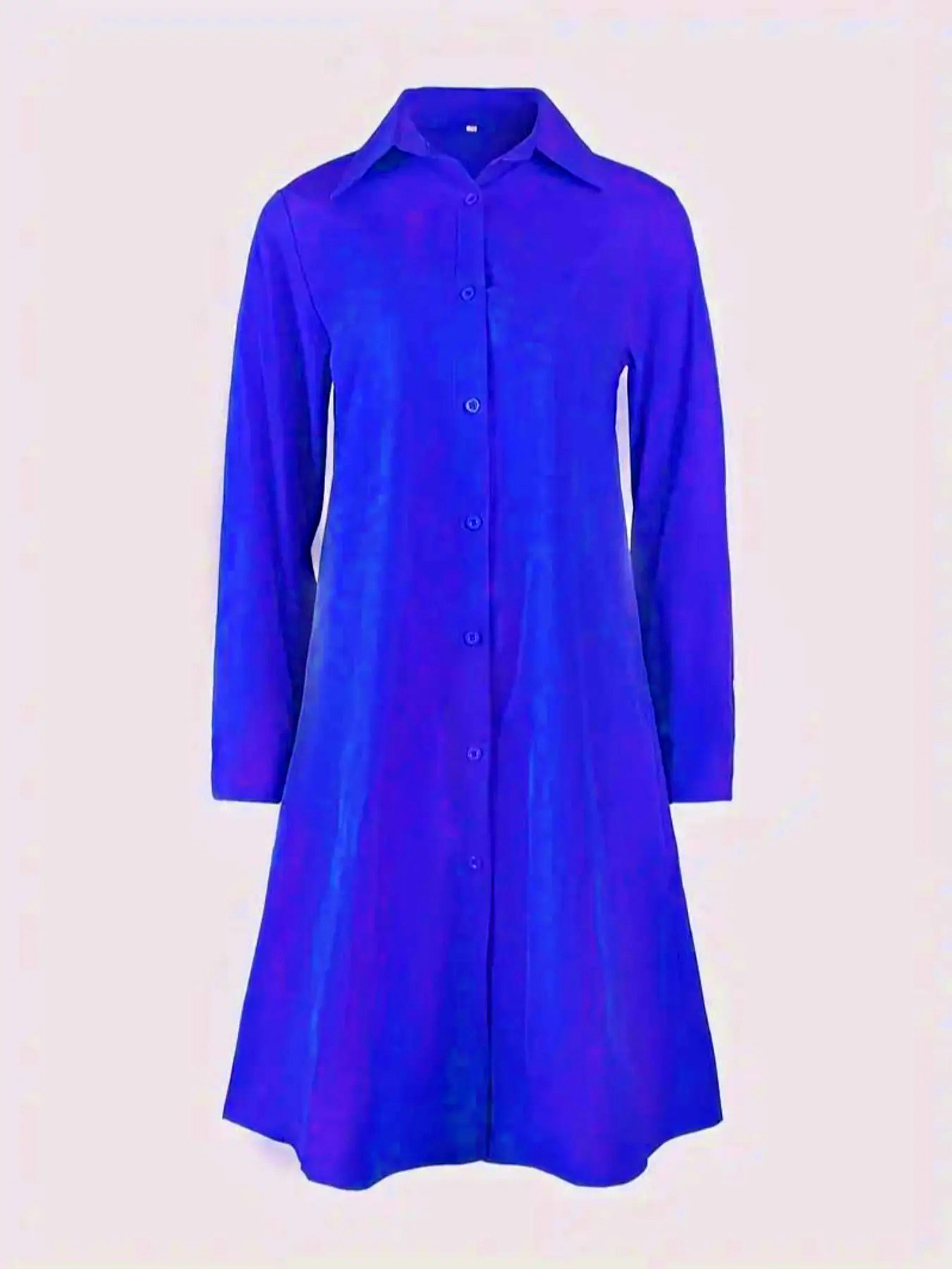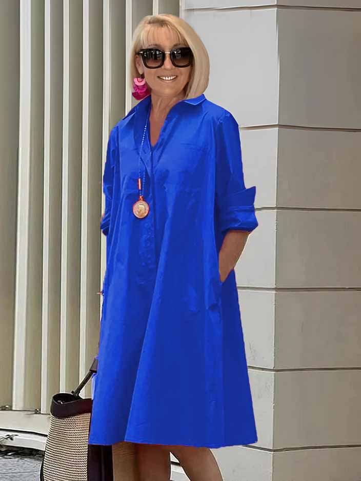 • Spring-Summer New Type Fashion Temperament Shirt Collar Long Sleeve Pocket Mid-Length Dress